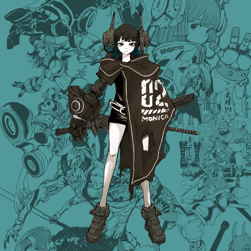His artworks often feature female figures blended with mechanical elements, creating a visual impact that is both gentle and resilient—perfectly capturing the unique charm of “cute yet cool.”